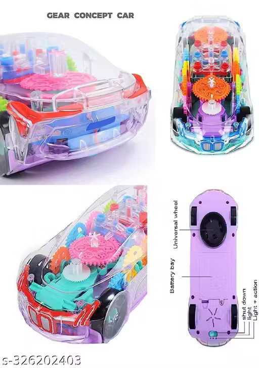 3D Transparent Car with 360 Degree Rotation Gear Simulation Mechanical Car With Light & Sound