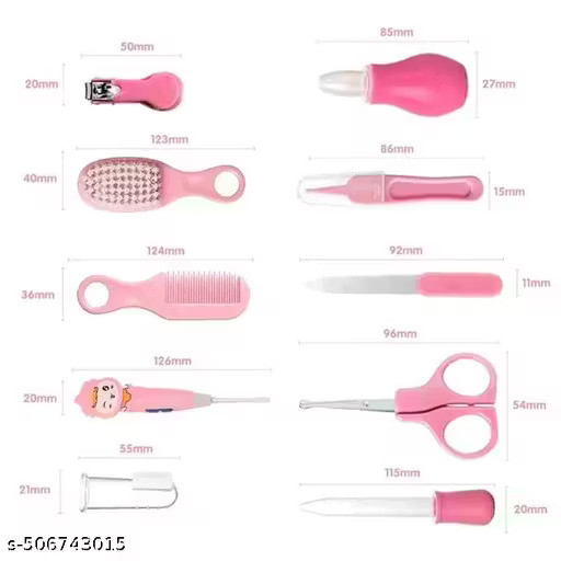 This Portable Baby Care Kit is a comprehensive 10-pieces : a soft brush, comb, nail clipper, scale medicine dropper, scissors, tweezers, finger tooth brush, ear pick, nail filer, and nasal aspirator, that includes essential tools for newborn grooming and healthcare. they are made from ABS plastic, Stainless steel and medical grade silicone which is safe, No smell, non-toxic and no harm for the baby. this set is safe for babies and gentle on delicate skin. All the tools are housed in a convenient carrying case, making it easy to keep with you on the go. It's lightweight and portable. The case is compact and can be easily stored in a diaper bag, purse or backpack, so you can have it with you wherever you go. This set makes a thoughtful gift for new parents and is sure to be appreciated and used frequently.